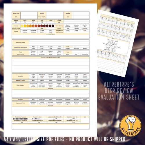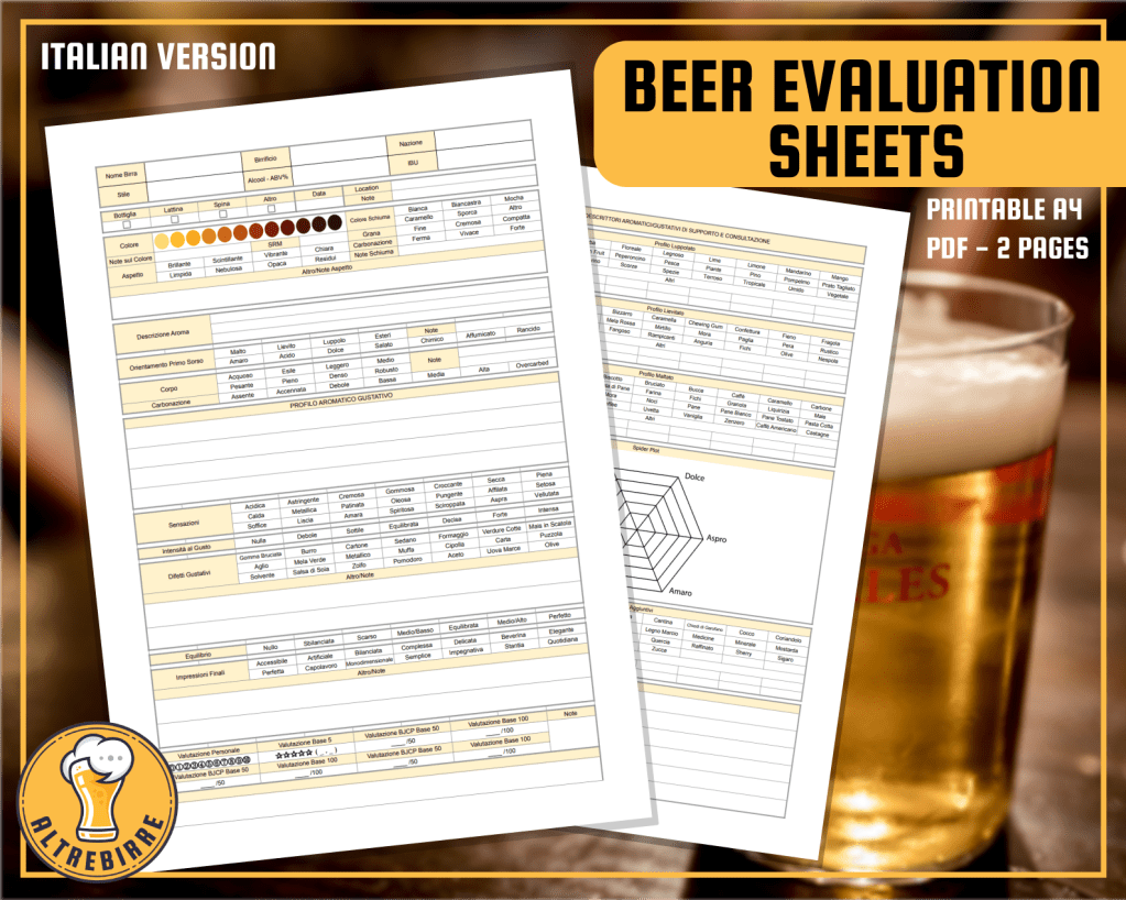 🛍️🍺 su Etsy sono già disponibili le schede di degustazione che abbiamo creato per Altrebirre in versione PDF A4 stampabile. La prima pagina è un ibrido tra una tabella, una checklist e un notepad. La seconda è un supporto a fini descrittivi con termini specifici divisi per profili aromatici e un grafico a radar compilabile. 📝