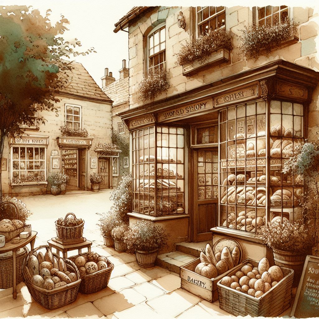 Una graziosa piazza racchiudeva le principali botteghe di vivande. Giungendovi non si poteva fare a meno di sentire un invitante profumo di pane provenire dal forno, che ogni giorno esponeva in vetrina ogni tipo di prelibatezza dolce e salata. Accanto vi era il negozio di frutta e verdura della famiglia di contadini del paese, che ogni giorno portavano dagli orti della collina i frutti più freschi e buoni mai mangiati.