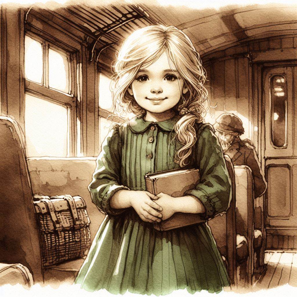 Salì sulla sua carrozza e si sedette vicino al finestrino, per poter ammirare il panorama. Accanto a lei sedeva una famiglia composta da moglie, marito e una bimba. La mamma le chiese “Lucy, tesoro, vuoi mangiare qualcosa?”. La bimba rispose “No, mamma, adesso non ho tanta fame.”