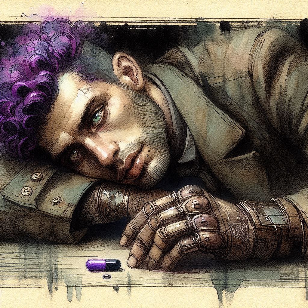 Questa immagine rafforza il senso di disperazione. Il gesto di appoggiare la testa sulle mani è tipico di chi è sopraffatto dal peso dei pensieri o dal dolore emotivo. La postura suggerisce un senso di sconfitta, come se il protagonista fosse schiacciato dal proprio stesso stato interiore e incapace di reagire.