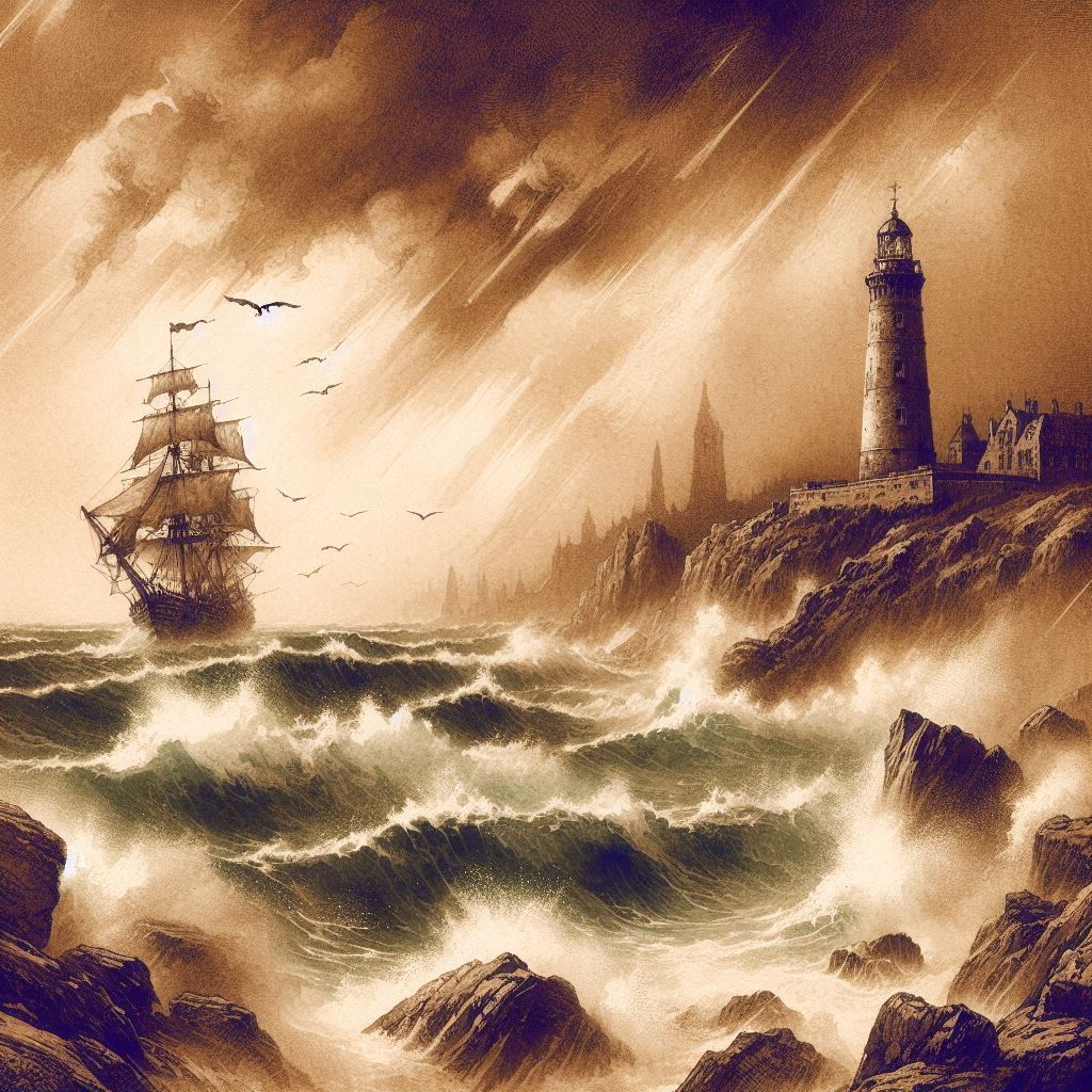 When a tempest roars o’er the ocean wide,