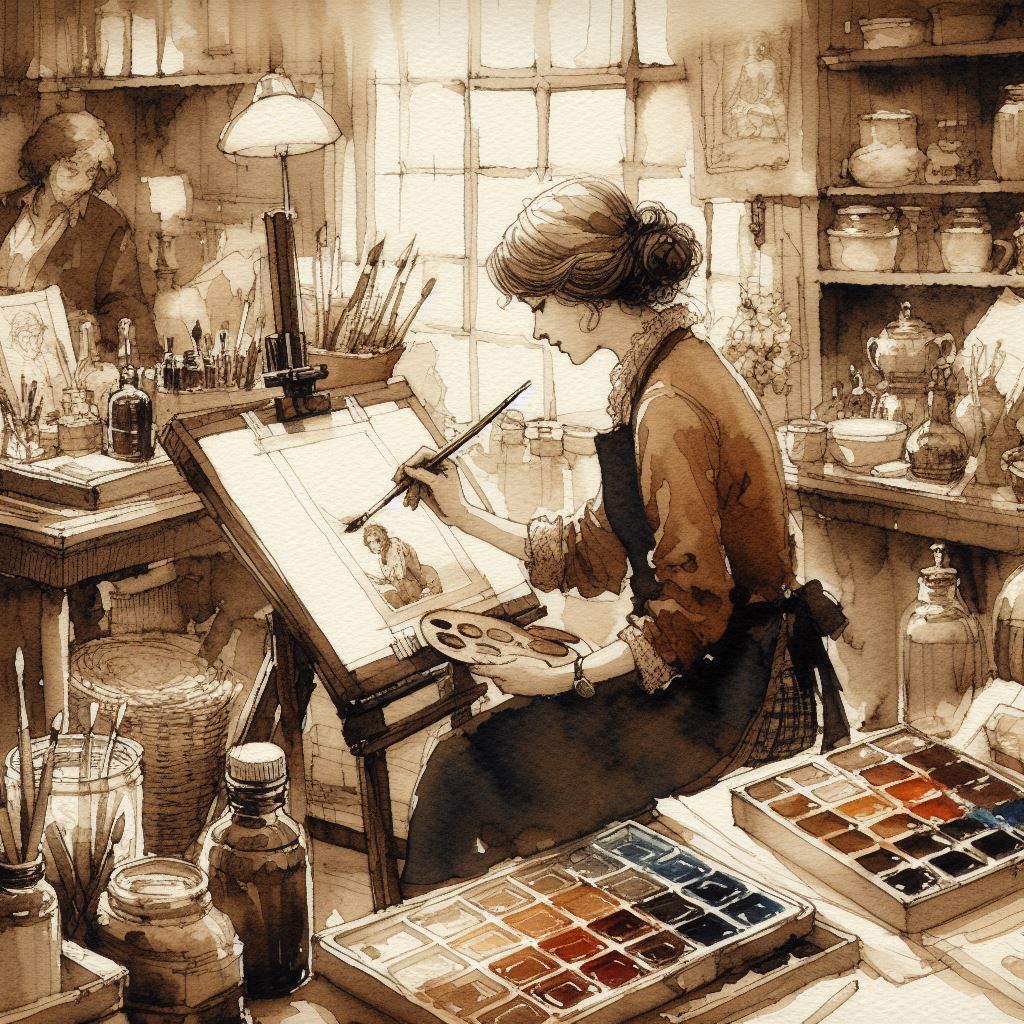 La trovò seduta alla sua postazione e intenta a dipingere una scena di vita molto realistica e suggestiva.
