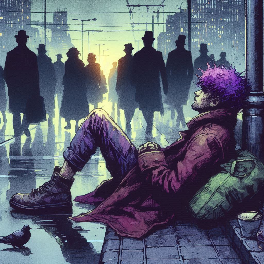 L’uso delle “leeches” (sanguisughe) è una metafora viscerale ed evocativa del degrado fisico e mentale in cui Bernard è intrappolato. Da un lato, queste creature simboleggiano le difficoltà della vita di strada, il costante sfruttamento da parte di una società che lo consuma senza dargli nulla in cambio, lasciandolo prosciugato, vuoto, privo di energia vitale. Dall’altro, il verso potrebbe alludere anche a un’immagine più concreta: la malnutrizione, le malattie o persino l’uso di droghe, che spesso segnano il corpo dei senzatetto con ferite, infezioni e cicatrici. La sensazione che il sangue venga progressivamente succhiato accentua l’idea di una lenta e inesorabile consunzione, come se Bernard fosse ormai privo di qualsiasi risorsa per reagire.