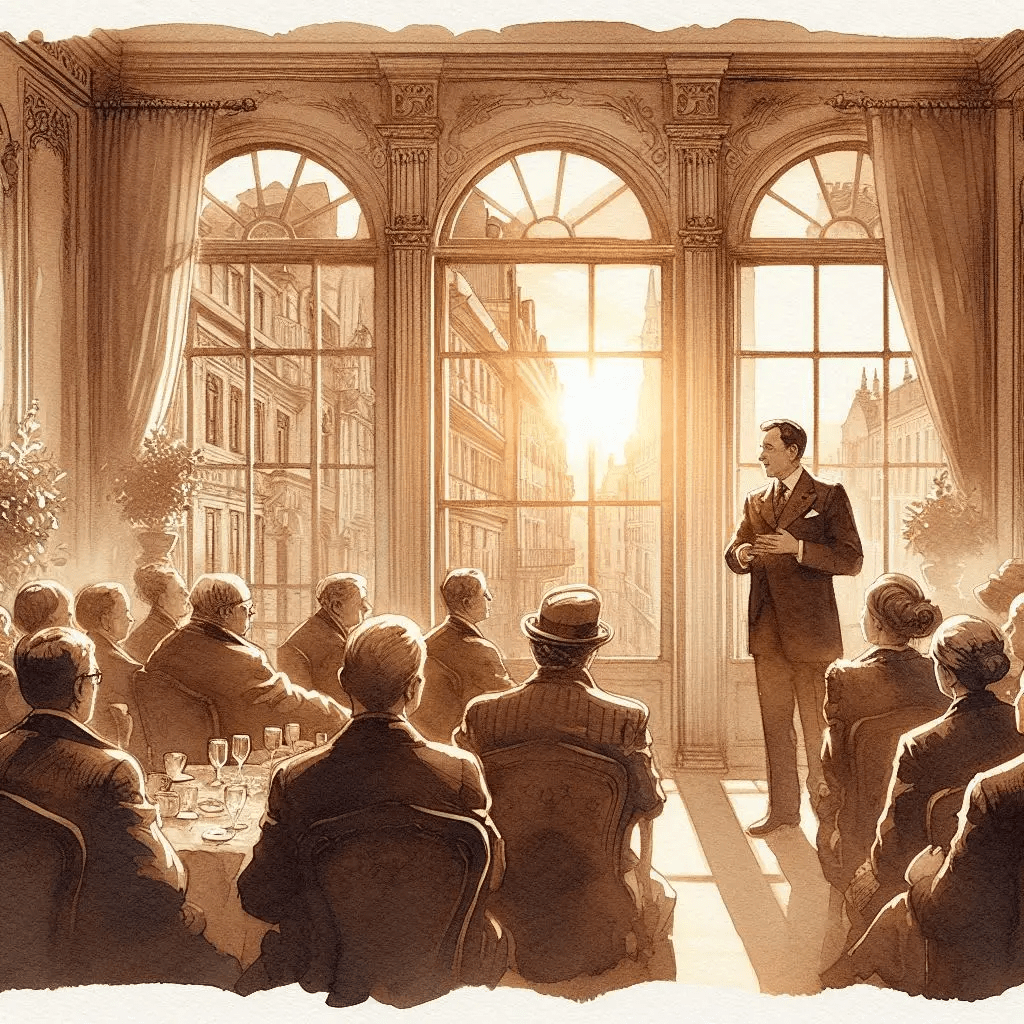 Le parole del signor Moureau si univano alla sensazione di pace che il panorama esterno regalava all’osservatore. Tra gli edifici si poteva infatti scorgere il sole alzarsi lentamente verso il cielo. Il colore era ancora di un arancione tenue e delicato tipico delle prime ore del mattino, ma con qualche mezz’ora di pazienza anche il clima freddo avrebbe lasciato lentamente il posto all’aria mite e tiepida del giorno.
