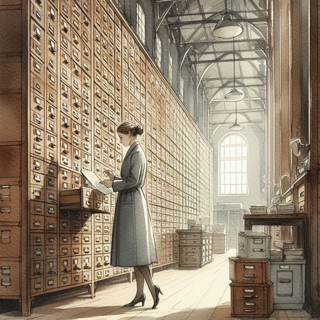 I cassetti erano circa duecento. Lei e un collega si alternavano per procedere più speditamente e, al tempo stesso, concedere tregua agli occhi, che si affaticavano in fretta sotto quella richiesta continua di attenzione, precisione e prontezza.